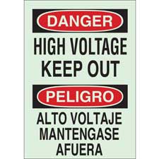 Brady BradyGlo Bilingual DANGER High Voltage Keep Out Sign/ Buy onlineOverview B-324 BradyGlo™ material is a glow-in-the-dark (photoluminescent) pressure sensitive polyester. B-324 is ideal for exit and directional signs, identification of fire alarms and extinguishers...