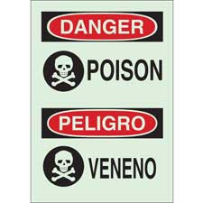 Brady BradyGlo Bilingual DANGER Poison Sign/ Buy onlineOverview B-324 BradyGlo™ material is a glow-in-the-dark (photoluminescent) pressure sensitive polyester. B-324 is ideal for exit and directional signs, identification of fire alarms and extinguishers Photoluminescent material charges...