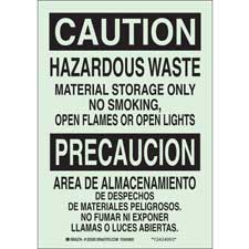 Brady BradyGlo Bilingual CAUTION Hazardous Waste Material Storage Only Sign/ Buy onlineOverview B-324 BradyGlo™ material is a glow-in-the-dark (photoluminescent) pressure sensitive polyester. B-324 is ideal for exit and directional signs, identification of fire alarms and...