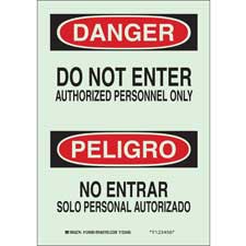 Brady BradyGlo Bilingual DANGER Do Not Enter Authorized Personnel Only Sign/ Buy onlineOverview BradyGlo™ Glow-In-The-Dark Plastic (B-347) features high performance photoluminescence material that is 100% reliable and virtually maintenance free. Compliant to NFPA Life Safety...
