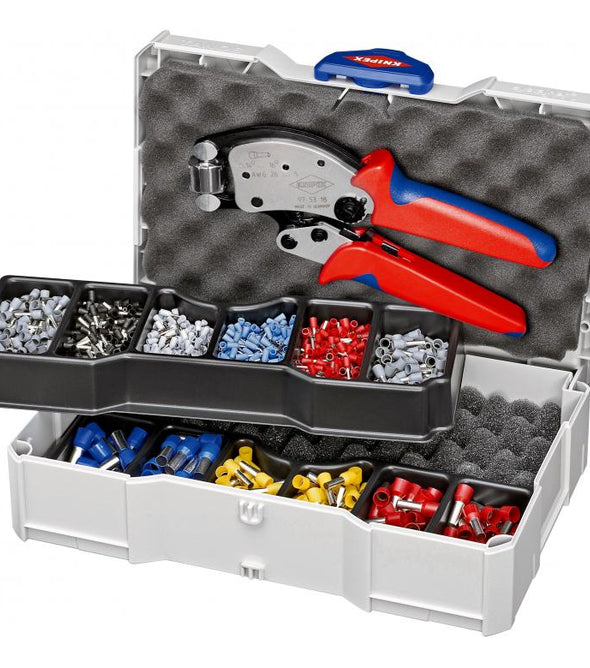Knipex 97 90 13 Crimp Assortment For wire ferrules with plastic collars ASSORTMENT OF CABLE LINKS TWISTOR 16 With KNIPEX Twistor16® 97 53 18 In a TANOS MINI-systainer® (solid plastic box) Two stackable plastic inserts with...