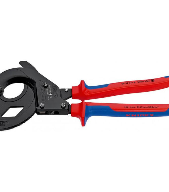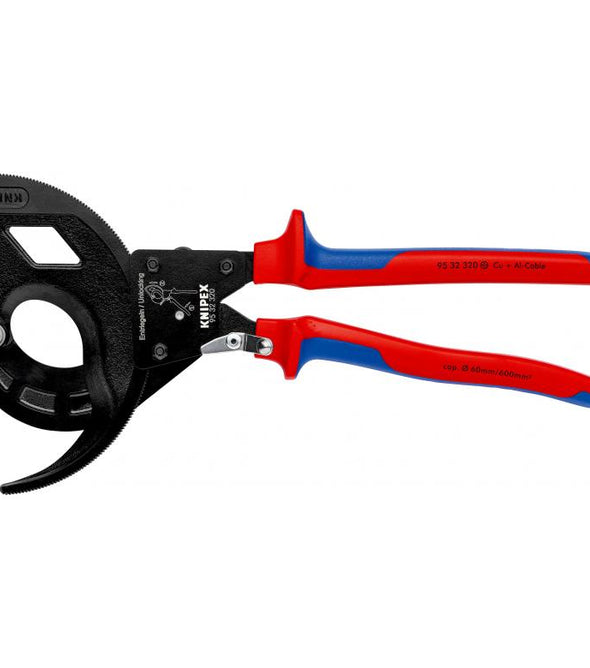 Cable Cutter 95 32 320 Knipex 95 32 320 Cable Cutter (ratchet principle, 3-stage) Sturdy. Easy to use. Stable. Innovative ratchet-drive. For cable up to 60 mm diameter. Fixed handle with support area for putting down...