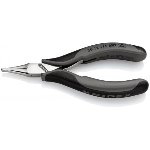 35 12 115 ESD Electronics Pliers ESD Precision pliers for fine assembly work, e g. in electronics and fine mechanics For gripping, holding and bending Electrically discharging handles - dissipative Sturdy, zero backlash box joint Smooth...
