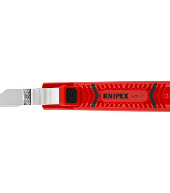 CABLE KNIFE WITH HOOK BLADE 16 20 165 SB Dismantling Tool With scalpel blade With knife and hook blade, protective cap included For stripping all common round cables Self-tightening holding lever With adjusting screw for cutting...