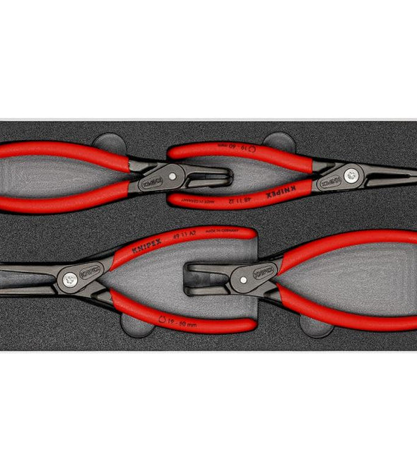 00 20 01 V09 Set of pliers In a foam tray Four precision circlip pliers in a foam tray In a foam tray for workbenches and tool trolleys Clearly organised storage of tools Precisely-sized recesses for...