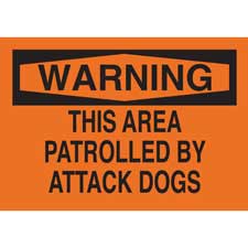 WARNING This Area Patrolled By Attack Dogs Sign/ Buy Online Security and Admittance Signs Security, access and admittance signs identify restricted areas or alert employees of potential hazards. They include legends such as "Do Not...