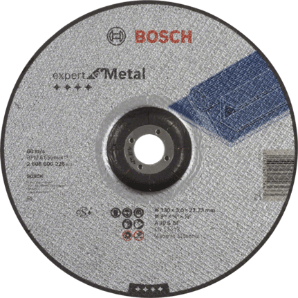 Technical data Part no. 2 608 600 221 Packaging type Non-packaged product, no Euro hole Pack quantity 1 Minimum order quantity 25 Description With depressed centre Details Specification A 30 S BF Diameter mm 125.0...