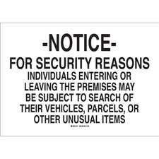 NOTICE May Be Subject To Search Sign/ Buy Online Security and Admittance Signs Security, access and admittance signs identify restricted areas or alert employees of potential hazards. They include legends such as "Do Not Enter,"...