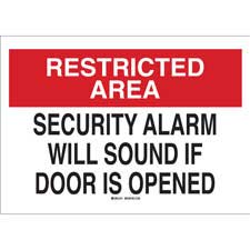 RESTRICTED AREA Security Alarm Will Sound If Door Is Opened Sign/ Buy Online Security and Admittance Signs Security, access and admittance signs identify restricted areas or alert employees of potential hazards. They include legends such...