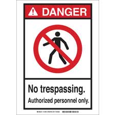 DANGER No Trespassing. Authorized Personnel Only. Sign/ Buy Online Security and Admittance Signs Security, access and admittance signs identify restricted areas or alert employees of potential hazards. They include legends such as "Do Not Enter,"...