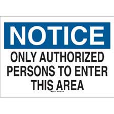NOTICE Only Authorized Persons To Enter This Area Sign/ Buy Online Security and Admittance Signs Security, access and admittance signs identify restricted areas or alert employees of potential hazards. They include legends such as "Do...