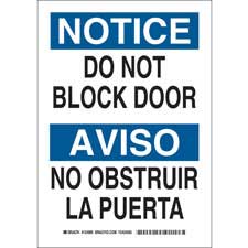 Bilingual NOTICE Do Not Block Door Sign/ Buy Online Security and Admittance Signs Security, access and admittance signs identify restricted areas or alert employees of potential hazards. They include legends such as "Do Not Enter,"...
