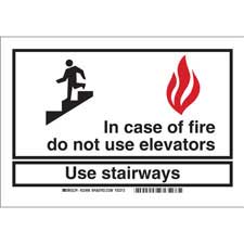 In Case Of Fire Do Not Use Elevators Use Stairways Sign/ Buy Online Security and Admittance Signs Security, access and admittance signs identify restricted areas or alert employees of potential hazards. They include legends such...