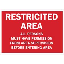 RESTRICTED AREA All Persons Must Have Permission From Area Supervision Before Entering Area Sign/ Buy Online Security and Admittance Signs Security, access and admittance signs identify restricted areas or alert employees of potential hazards. They...