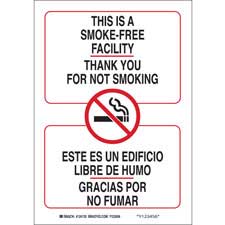 Bilingual This Is A Smoke- Free Facility Thank You For Not Smoking Sign/ Buy Online No Smoking Signs No Smoking signs will keep everyone in your facility safe and healthy by communicating to employees and...