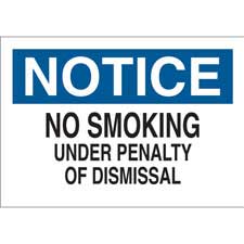 NOTICE No Smoking Under Penalty Of Dismissal Sign/ Buy Online No Smoking Signs No Smoking signs will keep everyone in your facility safe and healthy by communicating to employees and visitors the areas where smoking...