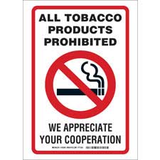 All Tobacco Products Prohibited We Appreciate Your Cooperation Sign/ Buy Online No Smoking Signs No Smoking signs will keep everyone in your facility safe and healthy by communicating to employees and visitors the areas where...