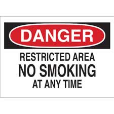 DANGER Restricted Area No Smoking At Any Time Sign/ Buy Online No Smoking Signs No Smoking signs will keep everyone in your facility safe and healthy by communicating to employees and visitors the areas where...