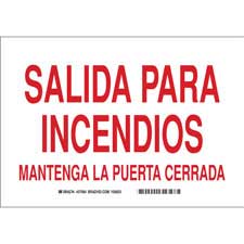 Brady Salida Para Incendios Mantenga La Puerta Cerrada Sign/ Buy onlineOverview B-302 is an indoor/outdoor high performance pressure sensitive safety sign, and is surface printed polyester with a polyester overlaminate. Weathers up to 8 years...