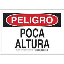 Brady PELIGRO Poca Altura Sign/ Buy onlineOverview B-302 is an indoor/outdoor high performance pressure sensitive safety sign, and is surface printed polyester with a polyester overlaminate. Weathers up to 8 years outdoors, even longer indoors,...