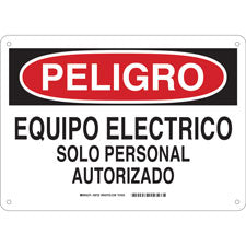 Brady Spanish PELIGRO Equipo Electrico Solo Personal Autorizado Sign/ Buy onlineOverview B-401 plastic signs from Brady® are ideal for use in light duty industrial, utility, commercial and institutional environments. High impact polystyrene with protected graphics...