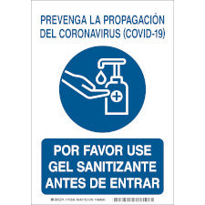 Brady Por Favor Use Gel Sanitizante Antes De Entrar COVID-19 Sign/ Buy onlineOverview Stop the spread of COVID-19 – post this sign throughout your facility to remind employees and visitors to use proper hygiene practices...