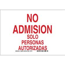 Brady No Admision Solo Personas Autorizadas Sign/ Buy onlineOverview B-401 plastic signs from Brady® are ideal for use in light duty industrial, utility, commercial and institutional environments. High impact polystyrene with protected graphics Recommended for...