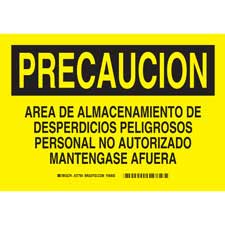 Brady PRECAUCION Area De Almacenamiento De Desperdicios Peligrosos/ Buy onlineOverview B-302 is an indoor/outdoor high performance pressure sensitive safety sign, and is surface printed polyester with a polyester overlaminate. Weathers up to 8 years outdoors,...