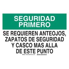 Brady Seguridad Primero Se Requieren Antejos Zapatos De Seguridad Y Casco Mas Alla De Este Punto Sign/ Buy onlineOverview Extremely durable B-120 Premium Fiberglass will not chip, fade, rust, shatter or peel for up to...