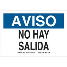 Brady AVISO No Hay Salida Sign/ Buy onlineOverview B-401 plastic signs from Brady® are ideal for use in light duty industrial, utility, commercial and institutional environments. High impact polystyrene with protected graphics Recommended for both...