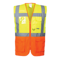 Revolutionary in its design the executive vest combines the light weight of a waistcoat with the practicality of pockets for those situations when a jacket may be too warm. A clear ID pocket for security passes and cards compliments this unique garment. With many companies and their operatives now using combinations of hivisibility orange and yellow fabrics together these contrasting styles are in increasing demand for many customers.